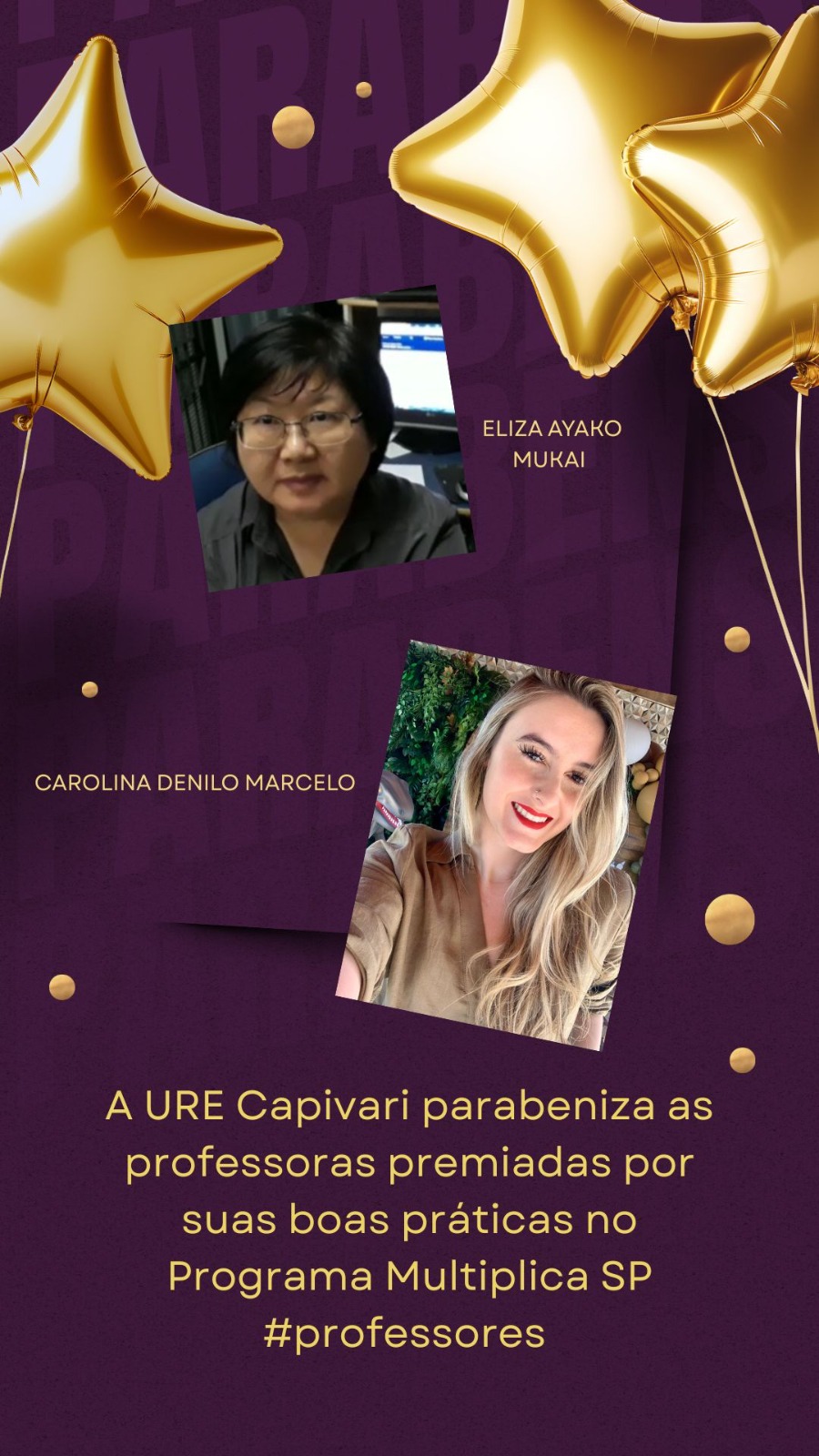 É com imensa alegria que a URE Capivari parabeniza as professoras: